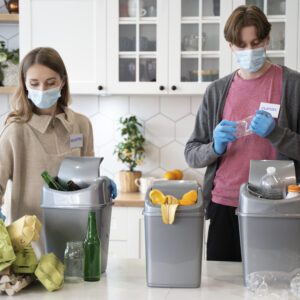 Providing basic cleaning supplies, such as disinfectant wipes and trash bins at every workstation, encourages employees to dispose of waste properly.